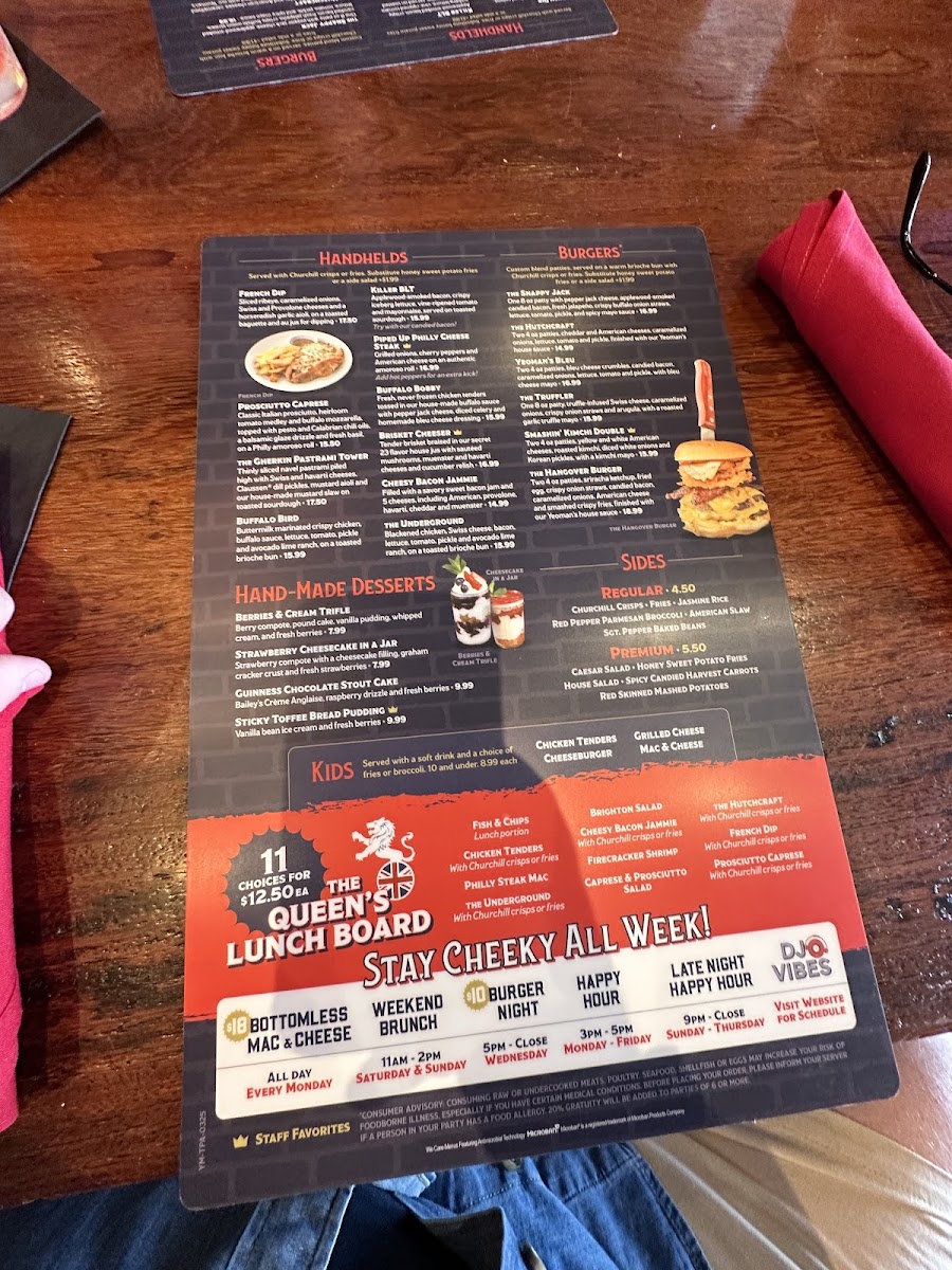 Two 4 oz. patties, sriracha ketchup, fried egg, crispy onion straws, candied bacon, caramelized onions, American cheese and smashed crispy fries, finished with our Yeoman's house sauce