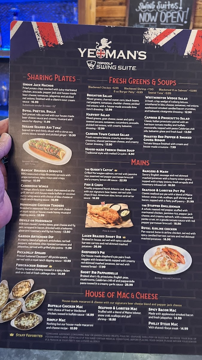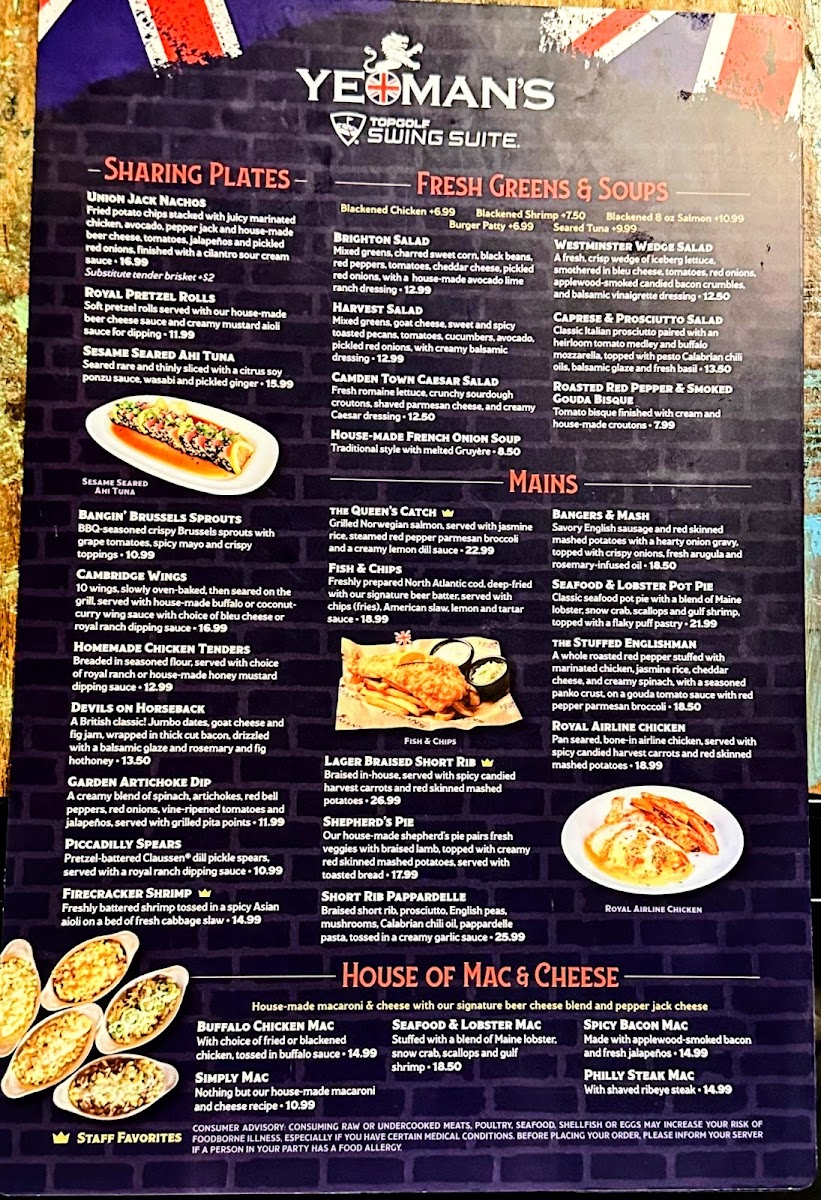 If you’re looking for a fun place to unwind with great food and drinks, the Yeoman's Topgolf Swing Suite Menu offers the perfect combination of delicious eats and a lively atmosphere. Located at 202 N Morgan St in Tampa, this spot invites you to kick back and enjoy a variety of mouthwatering dishes while you hit a few golf balls or challenge your friends to a game. Whether you're here for a casual snack or a full meal, the menu has something for everyone.